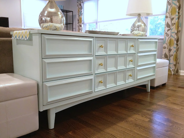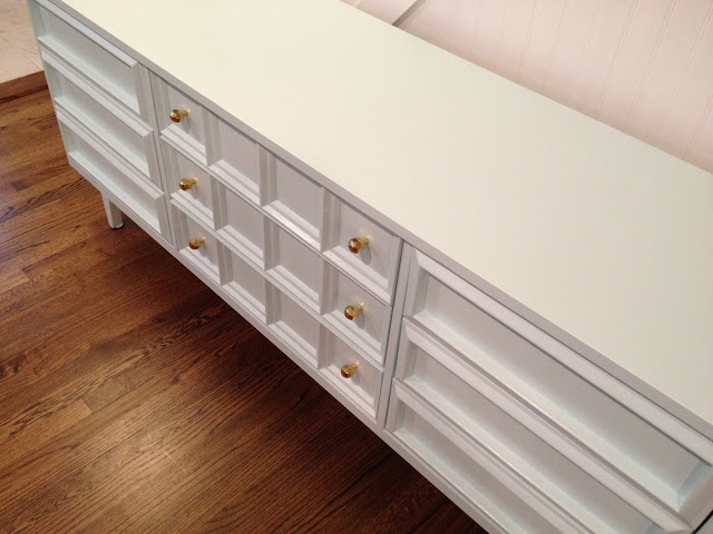 I was recently contacted by fellow blogger Gabbi (and a New Jersey blogger at that!) of Retro Ranch Reno about using my hardware for a dresser revamp. She selected the F-02 satin brass faceted knob for her project and went to work painting - and repainting - her fabulous mid-century find. The end product looks fab and the hardware really adds a touch of glam.